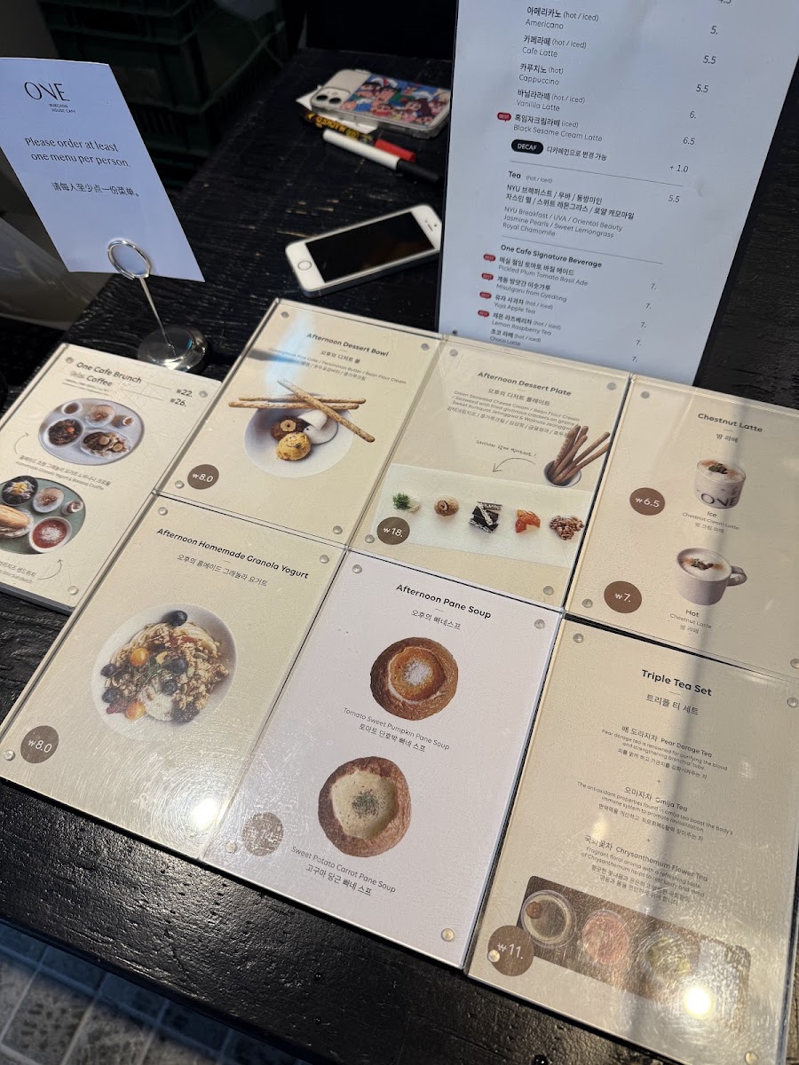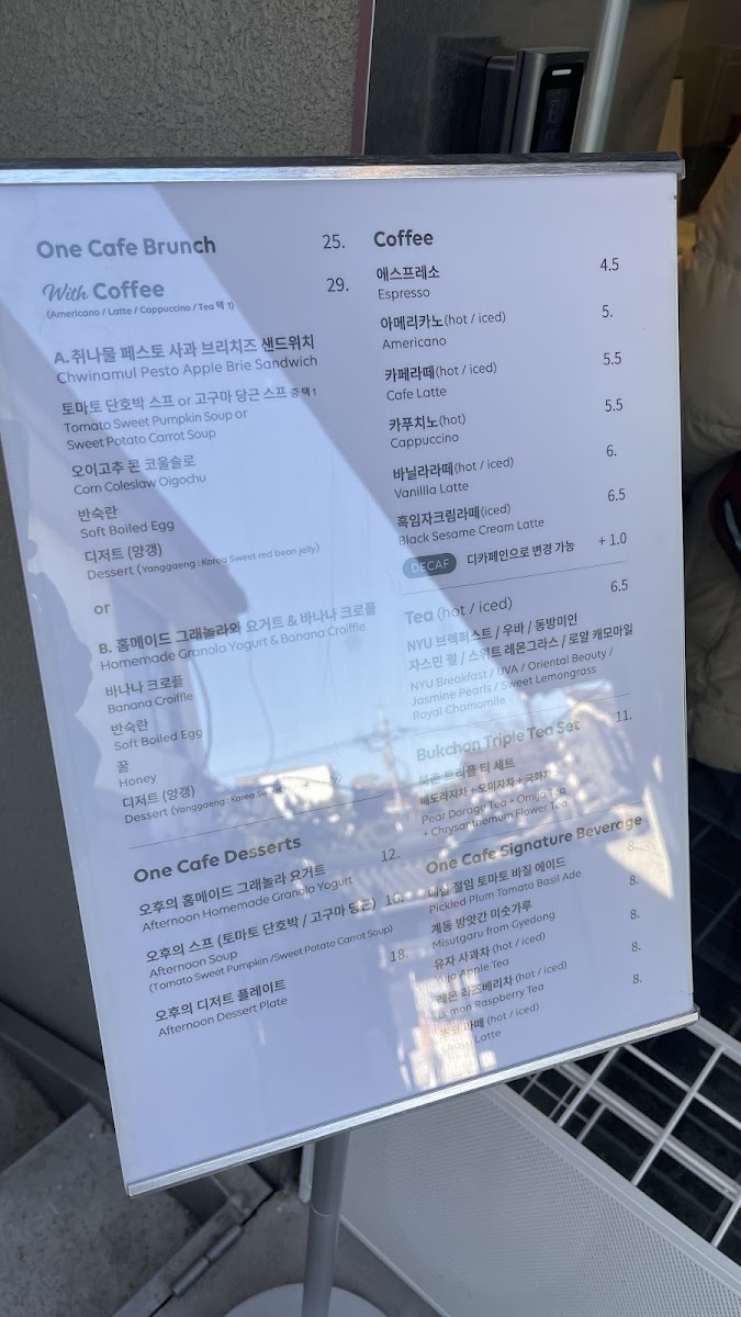 The menu at One Bukchon House Cafe offers a delightful variety of beverages and light bites that are perfect for a cozy and relaxing experience. One standout offering is their Cappuccino, which is crafted to perfection, delivering a rich, smooth flavor with just the right balance of espresso and milk. For those seeking a dairy-free option, the Oat Milk Latte is a standout, providing a creamy and slightly sweet alternative that complements the coffee without overpowering it. The cafe also features a selection of fresh pastries, adding a touch of sweetness to accompany the drinks. Whether you’re in the mood for a traditional espresso-based drink or a trendy oat milk creation, One Bukchon House Cafe’s menu promises a comforting and satisfying experience, ideal for both locals and visitors exploring the charming Bukchon area.